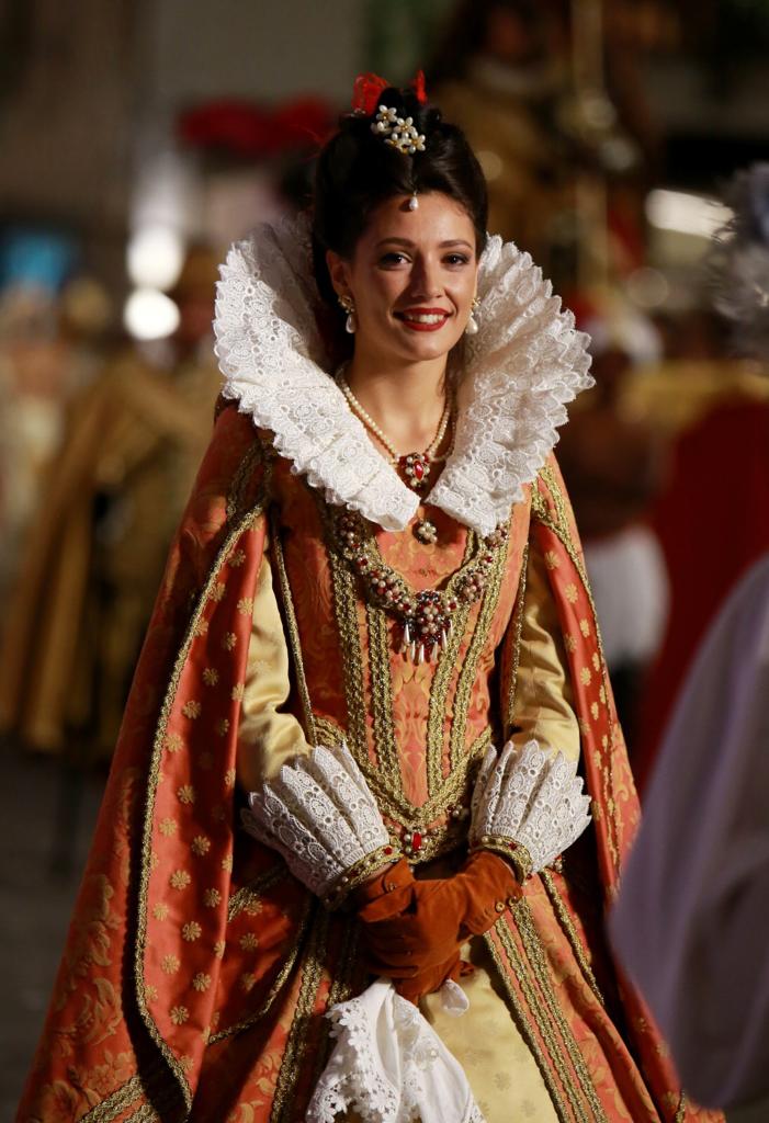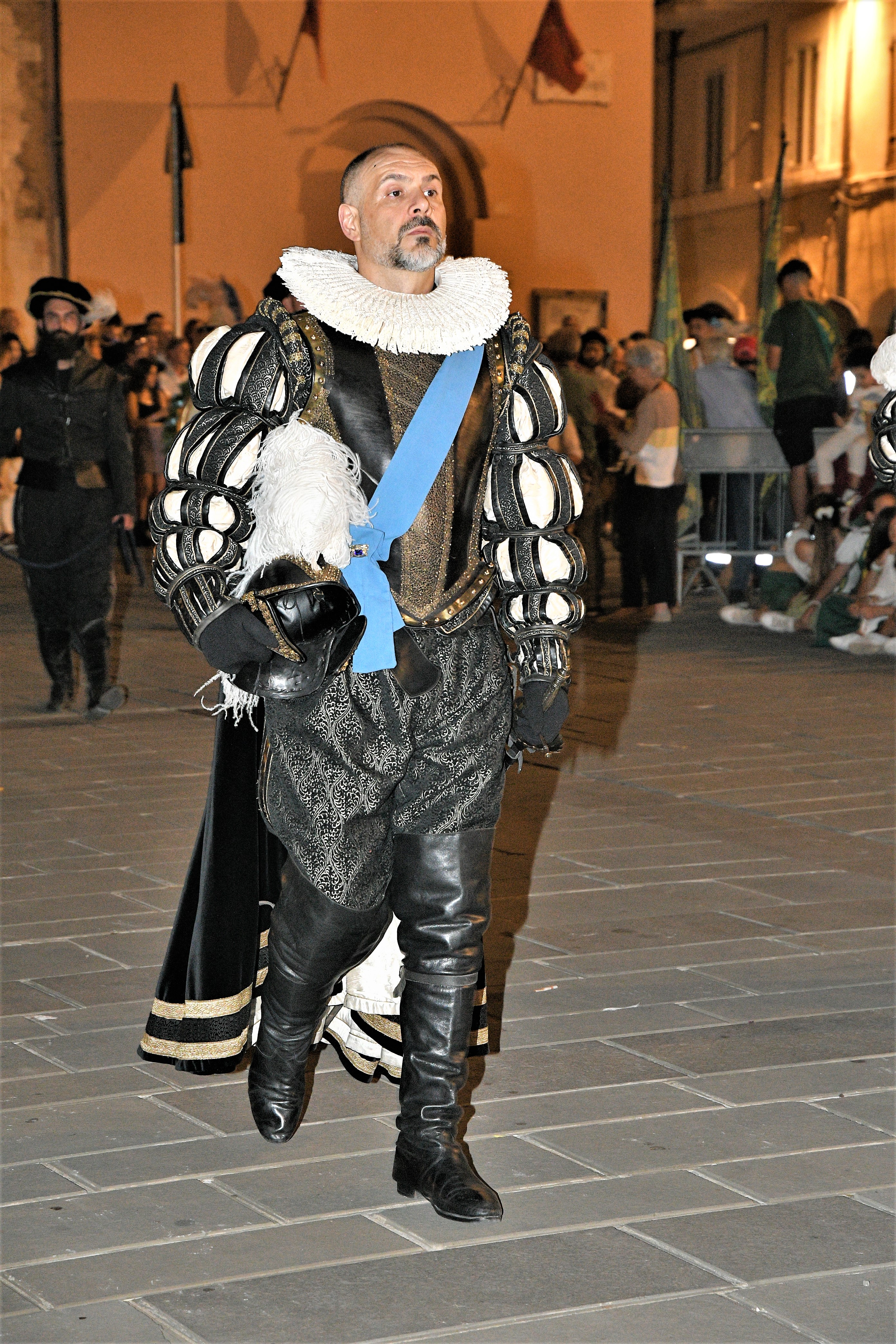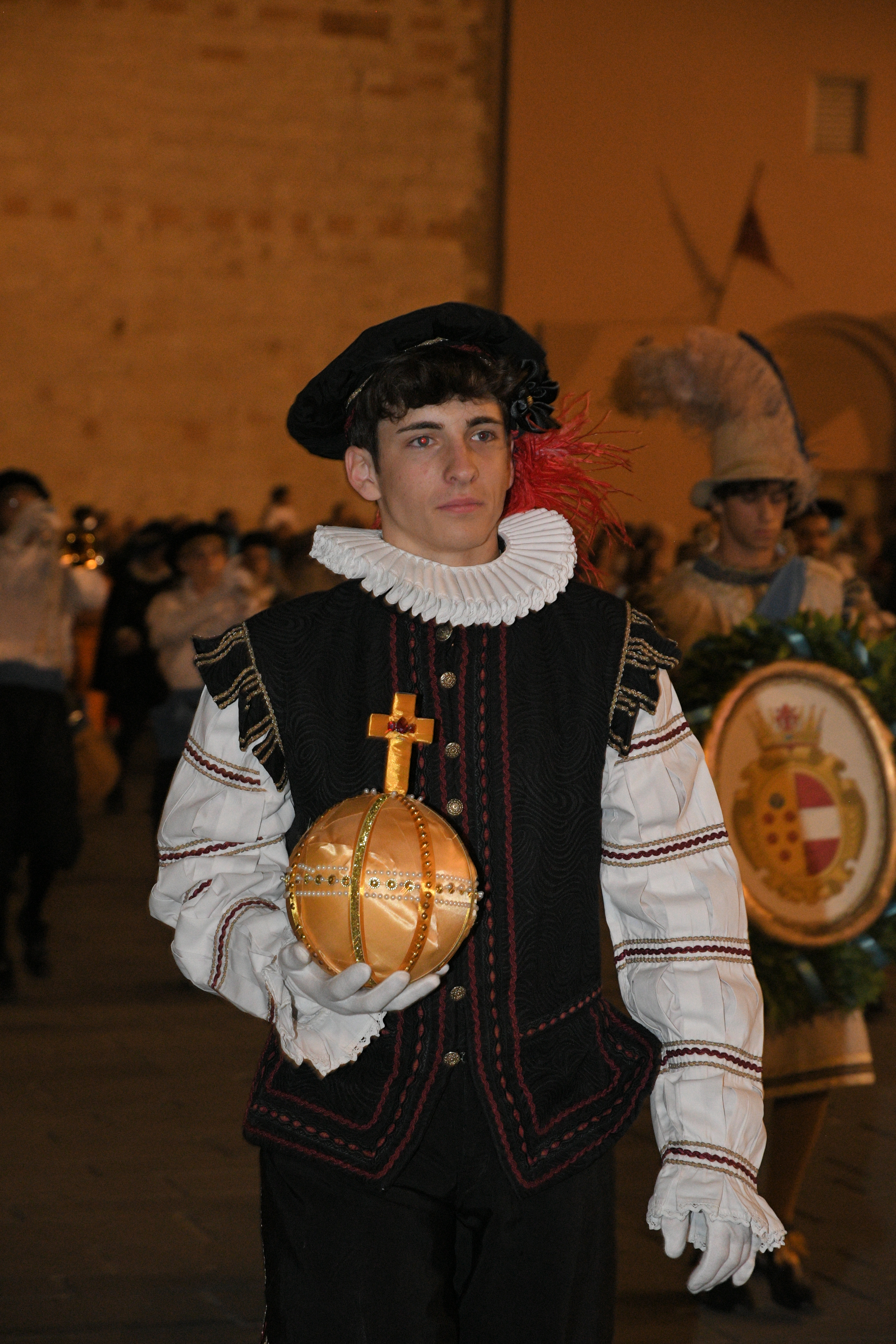 Mento alto, sguardo altero, sorriso accennato: quando si sfila non si presenta un abito, si entra in un personaggio, in un’epoca fatta di nobiltà ed eleganza. Procedere a passi lenti e sicuri sotto le pesanti gonne che ondeggiano, dentro a rigidi busti ti fa riflettere sulla condizione delle donne a quel tempo, sui tanti lacci stretti dalla società che le lascia a malapena respirare. Le donne di oggi sono molto più libere, nel modo di vestire e nello stile di vita, ma sono comunque “figlie” di quelle dame ed amano lasciare per alcune ore spazio ad un pizzico di vanità: il tempo sembra fermarsi, la frenetica routine quotidiana resta fuori dalle stanze della sede rionale, le persone intorno si muovono tra spazzole, cosmetici, diademi, gorgiere ed è impossibile non emozionarsi nel vedere i loro sguardi che cercano la perfezione in ogni dettaglio. Parola d’ordine: uscire in scena e dimostrarsi all’altezza del proprio ruolo, vivere a pieno un momento così unico e meraviglioso.