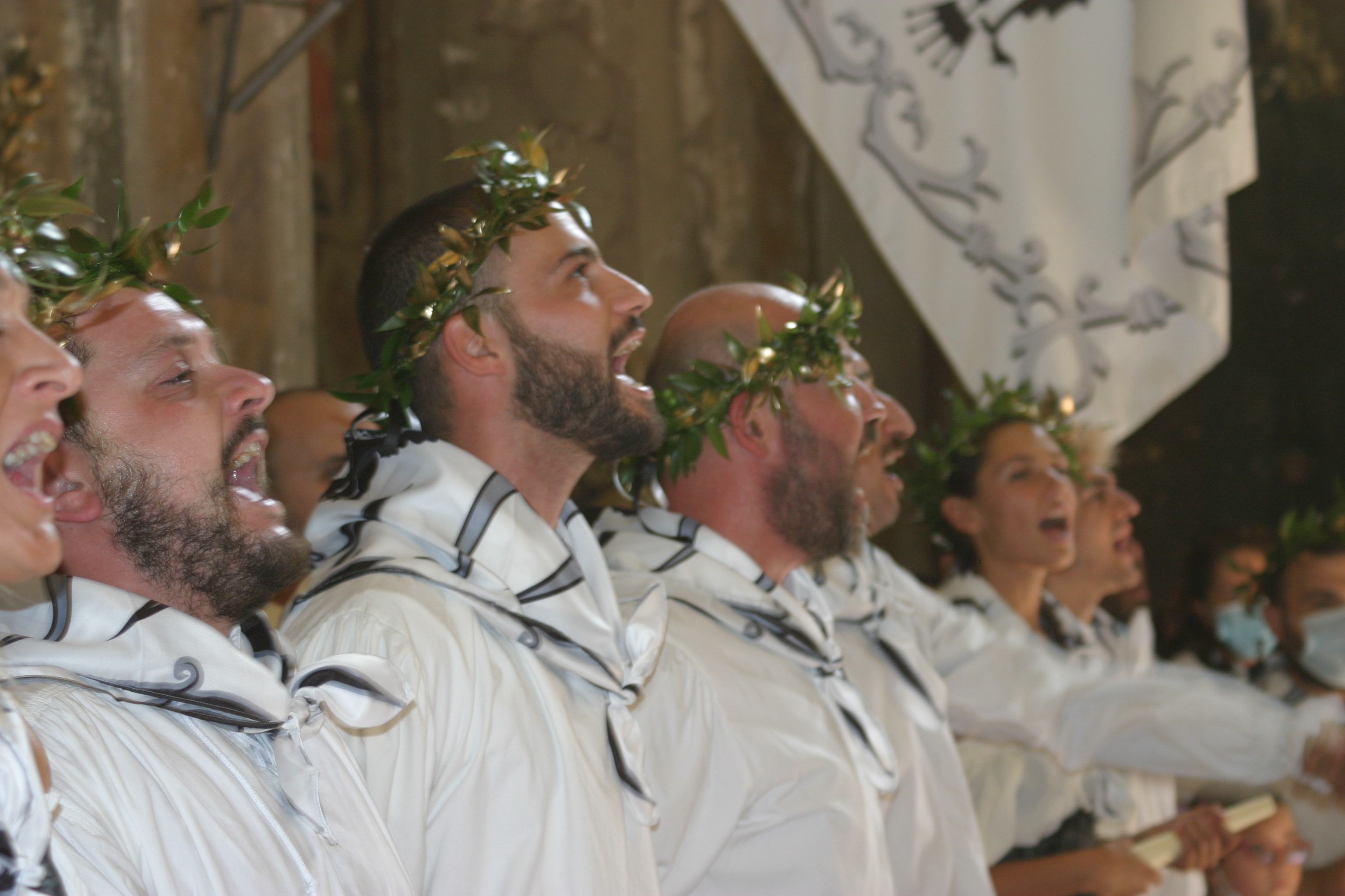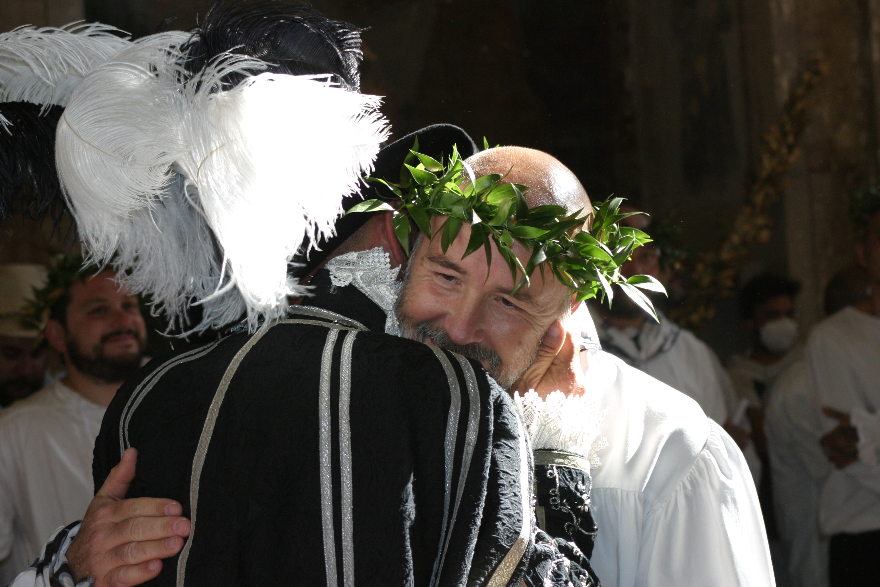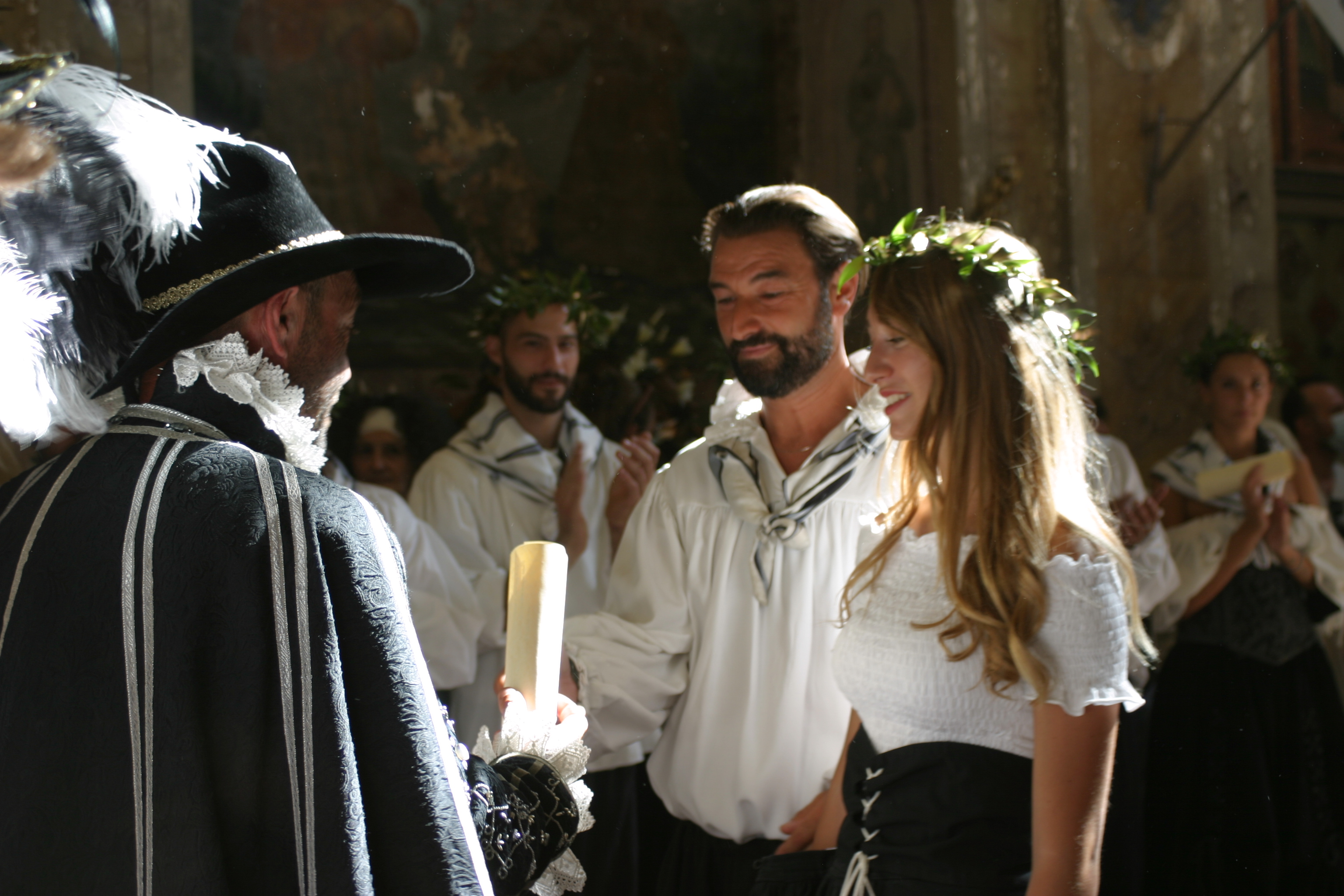 Mento alto, sguardo altero, sorriso accennato: quando si sfila non si presenta un abito, si entra in un personaggio, in un’epoca fatta di nobiltà ed eleganza. Procedere a passi lenti e sicuri sotto le pesanti gonne che ondeggiano, dentro a rigidi busti ti fa riflettere sulla condizione delle donne a quel tempo, sui tanti lacci stretti dalla società che le lascia a malapena respirare. Le donne di oggi sono molto più libere, nel modo di vestire e nello stile di vita, ma sono comunque “figlie” di quelle dame ed amano lasciare per alcune ore spazio ad un pizzico di vanità: il tempo sembra fermarsi, la frenetica routine quotidiana resta fuori dalle stanze della sede rionale, le persone intorno si muovono tra spazzole, cosmetici, diademi, gorgiere ed è impossibile non emozionarsi nel vedere i loro sguardi che cercano la perfezione in ogni dettaglio. Parola d’ordine: uscire in scena e dimostrarsi all’altezza del proprio ruolo, vivere a pieno un momento così unico e meraviglioso.