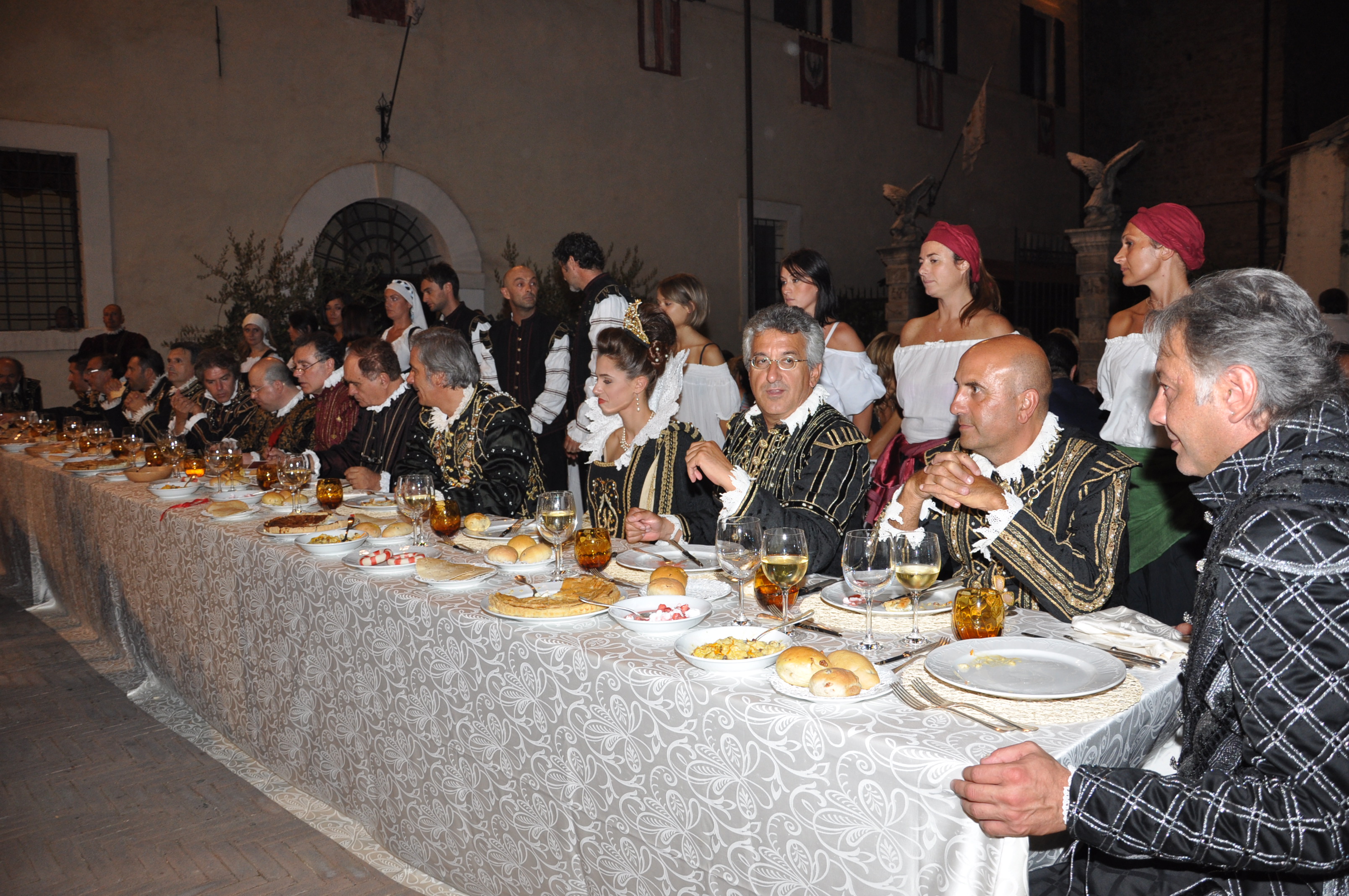 La tavola è un vero e proprio palcoscenico, dove esibire la ricchezza ed il prestigio di un’Istituzione, o di un casato. Nelle nostre rievocazioni, le taverne rionali sostituiscono i nobili palazzi ma l’obiettivo rimane lo stesso: fare sfoggio di lusso e buon gusto, curare ogni dettaglio per meravigliare i commensali